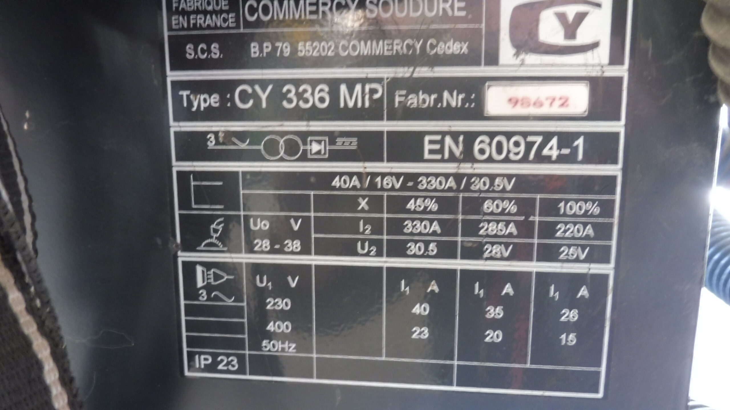 Poste à souder MIG CE COMMERCY type CY 336 MP